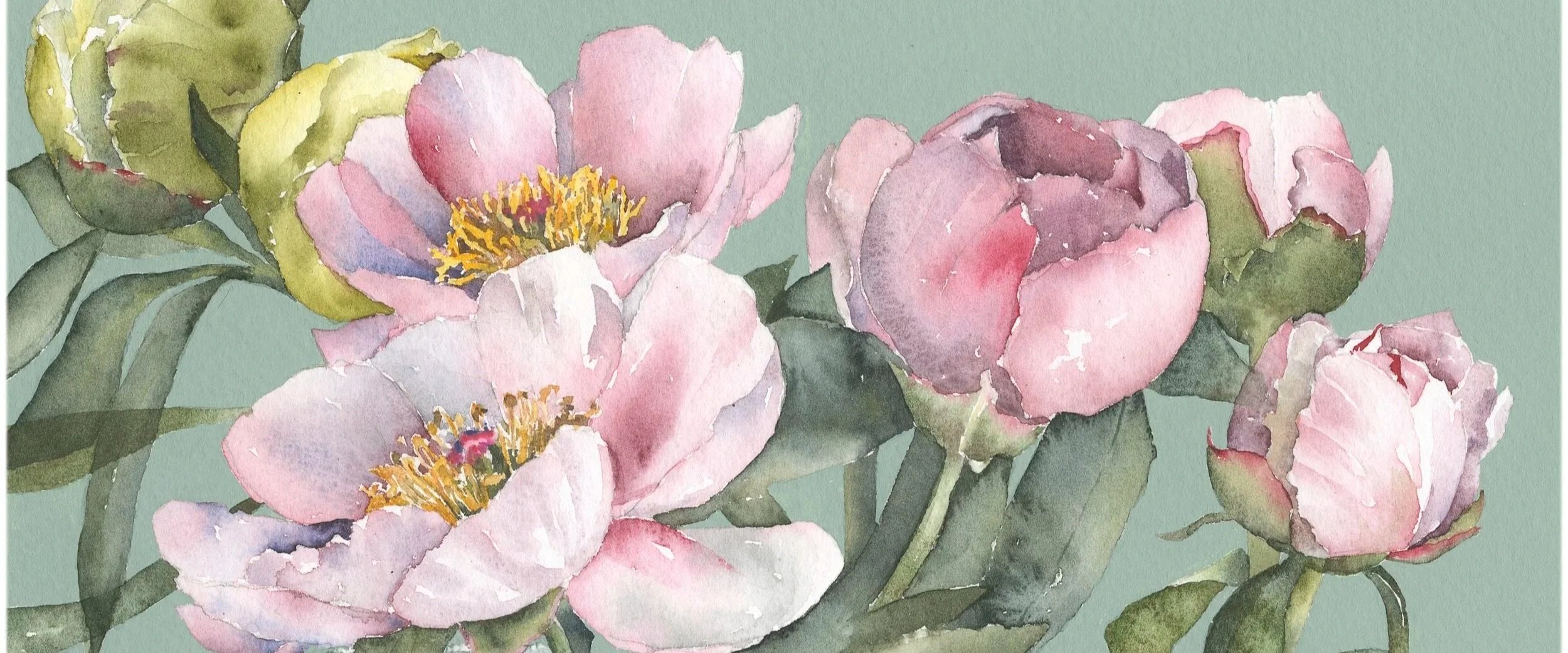 Pattern, colour and natural form are the main focus for my compositions. My inspiration for a painting usually begins with the flowers – their colour and shape along with their relationship to the fabrics and patterns. I love the contrast of natural form with geometric patterned fabrics and papers.